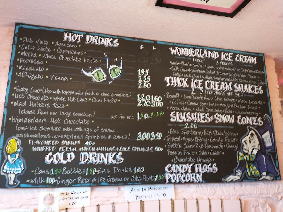 Indulge in Wonderland Light Bites such as the Caterpillar's Hot Buttered Crumpets for just £3.30, or savor the delightful Tweedie Dee Brie & Cranberry Jelly Panini. For warm comfort, the rich Americano hot drink awaits your enjoyment. Diners rave about the exceptional quality of food, complemented by the charming atmosphere and attentive staff.