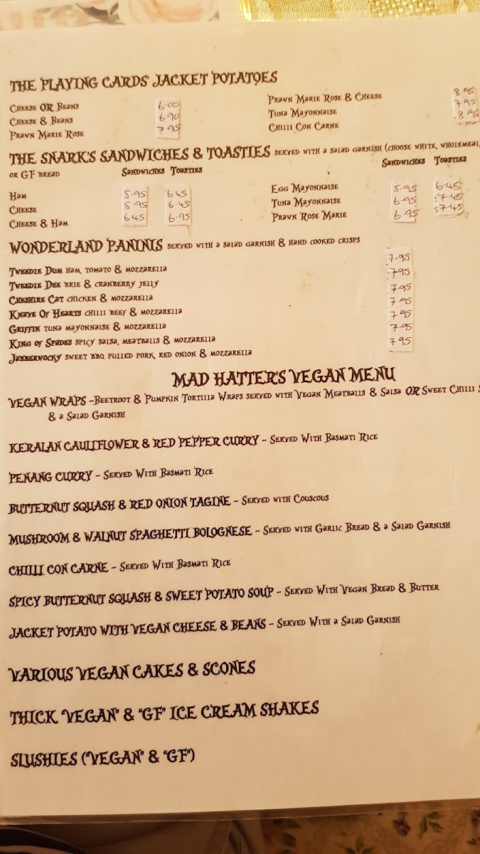 Mad Hatters Vegan Menu